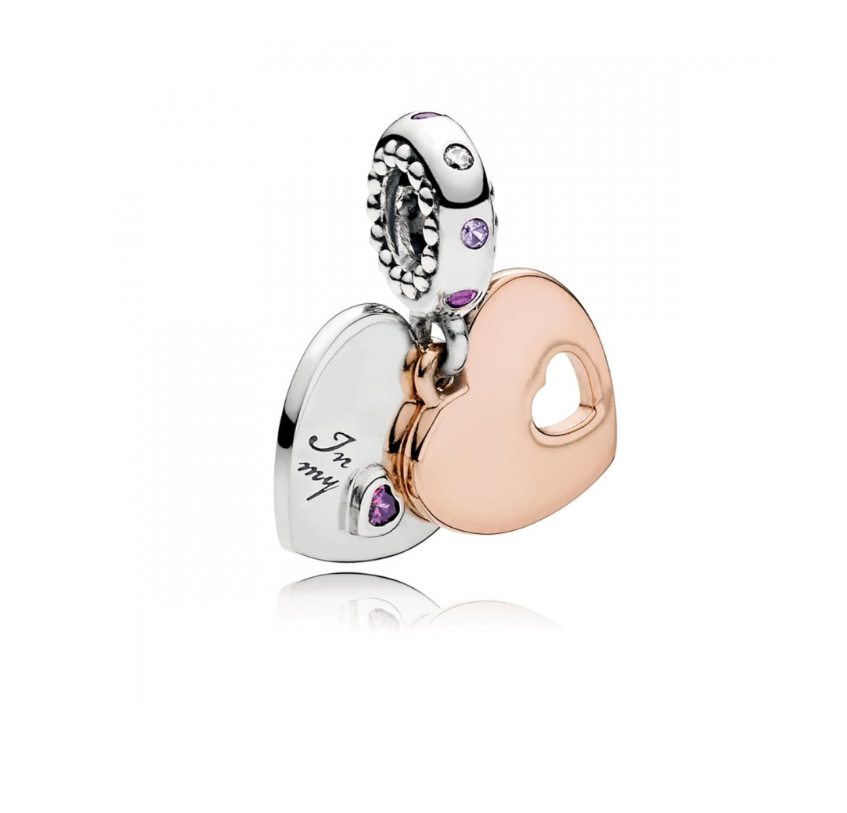 Crafted from hallmarked S925 sterling silver, this two-tone double hearts dangle charm combines elegance with meaningful design. The contrasting finishes highlight the intertwined hearts, symbolizing connection and affection. Perfect for adding a refined touch to your bracelet or necklace, this charm offers both durability and timeless style for everyday wear or special occasions.